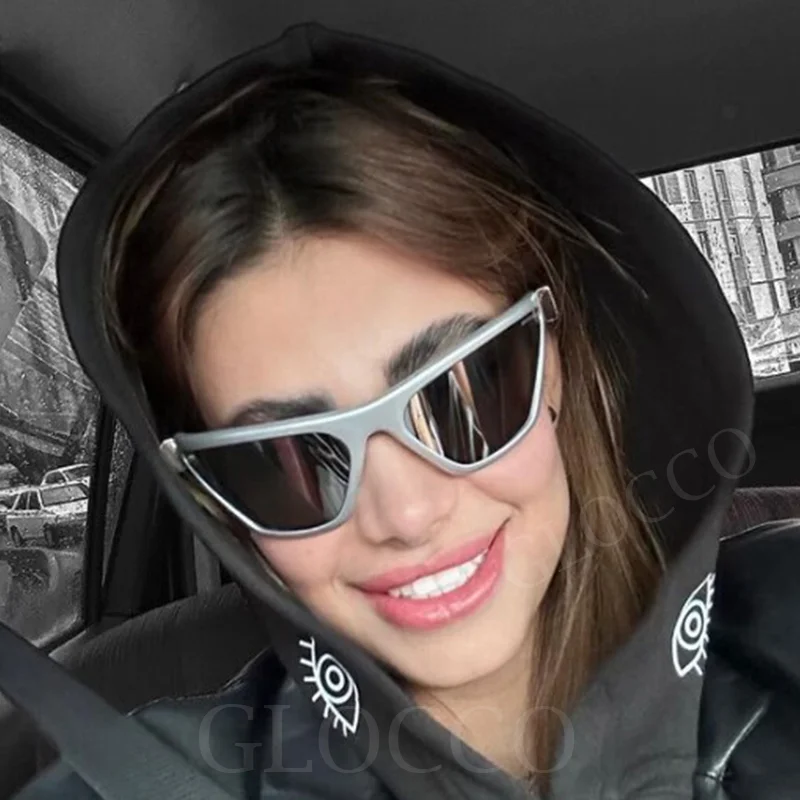 NEW Y2K Wrap Around Retro Sunglasses Women Men Brand Designer Cat Eye Sport Futuristic Sun Glasses Female Silver Mirror Shades
